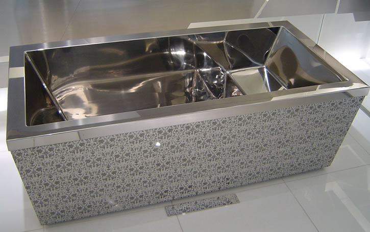 シンプルで頑強なクールな質感を持つステンレス。その資材を生かしながら今までのステンレス浴槽のイメージを一新させるスタンドアローンタイプの誕生です。